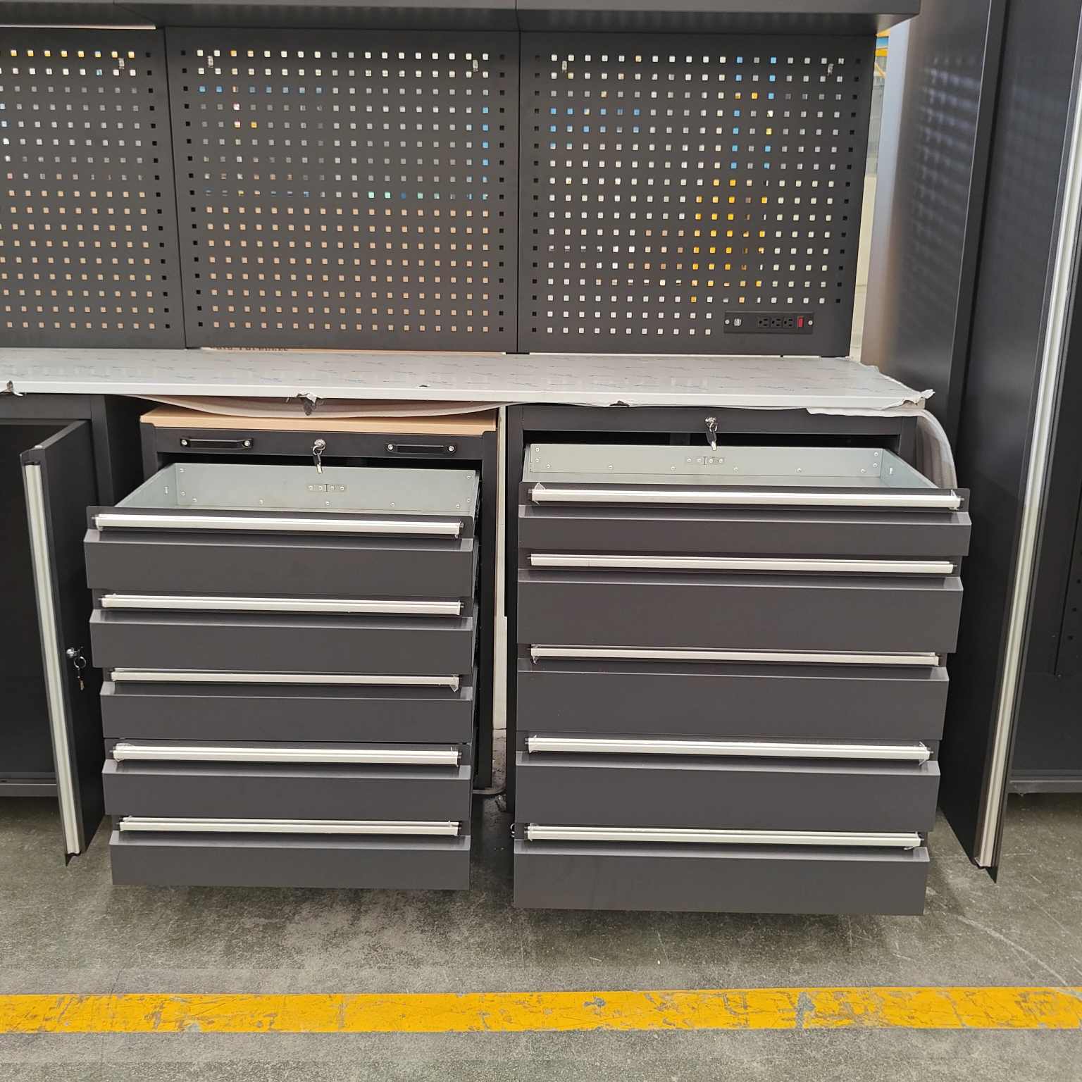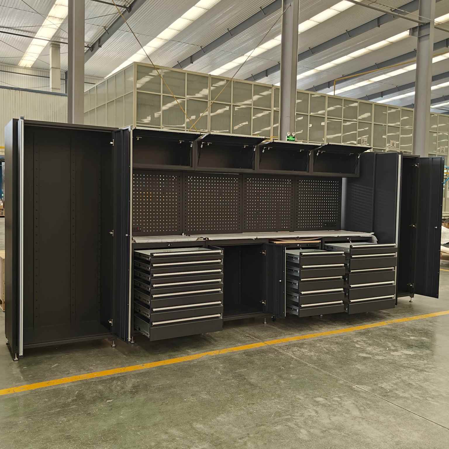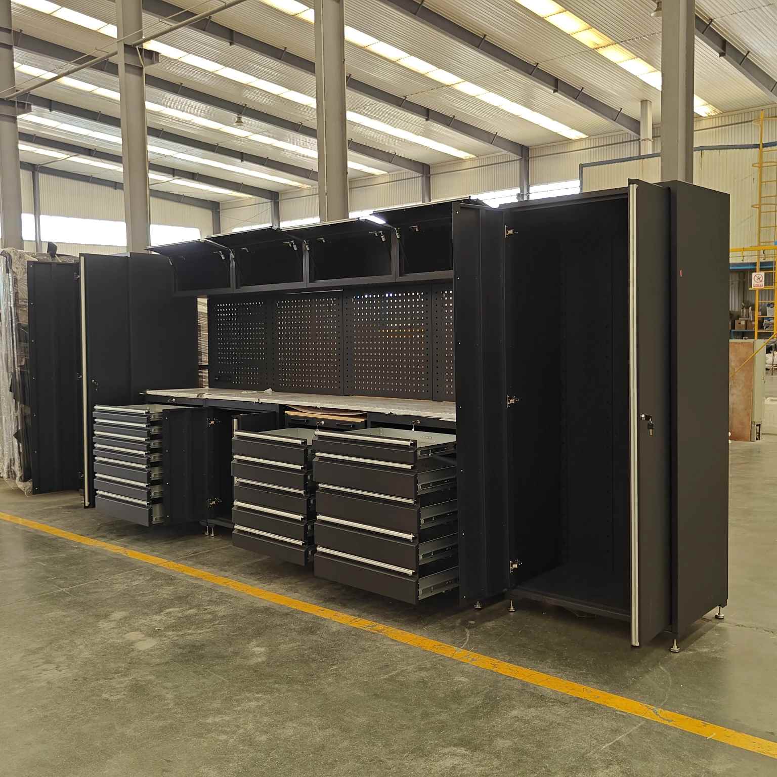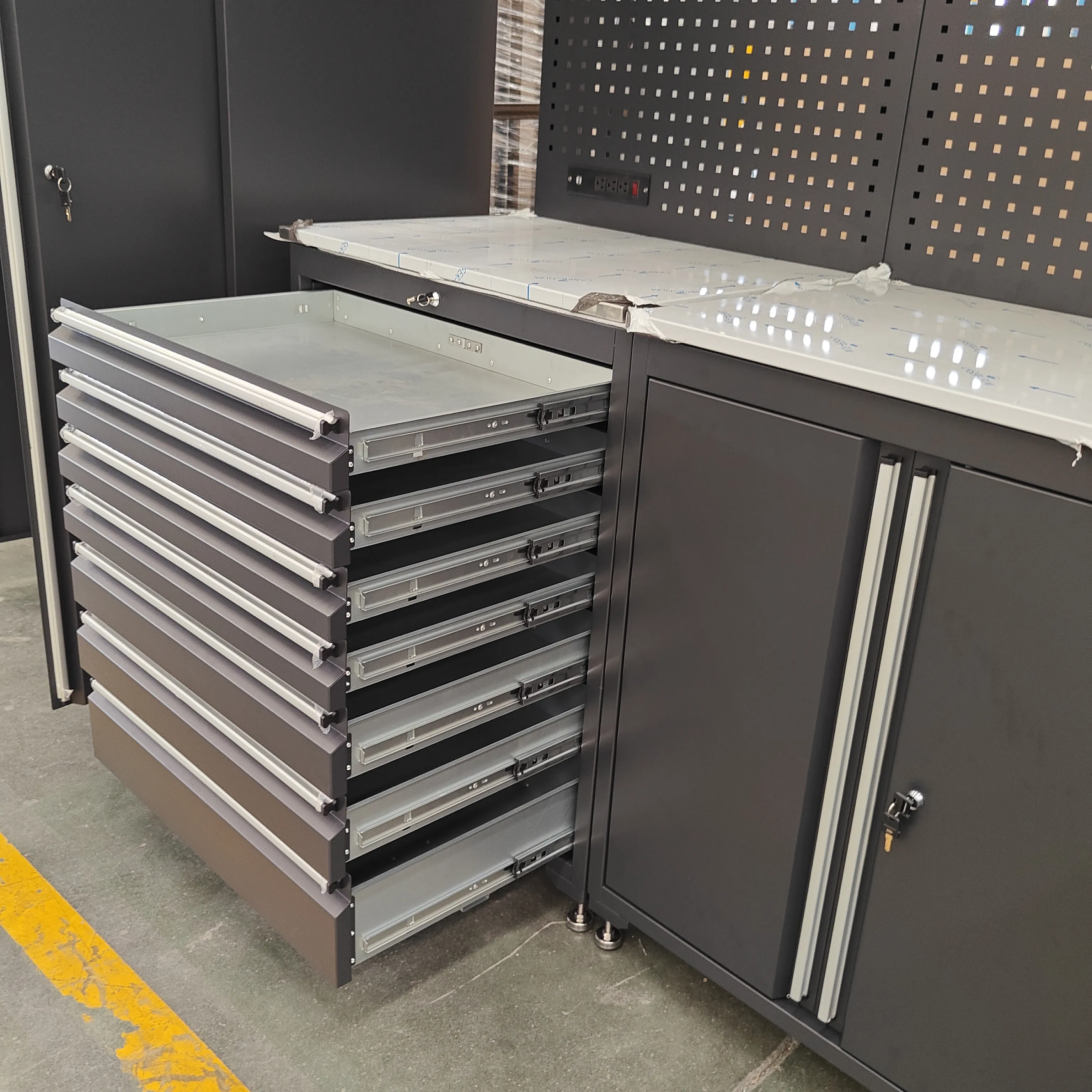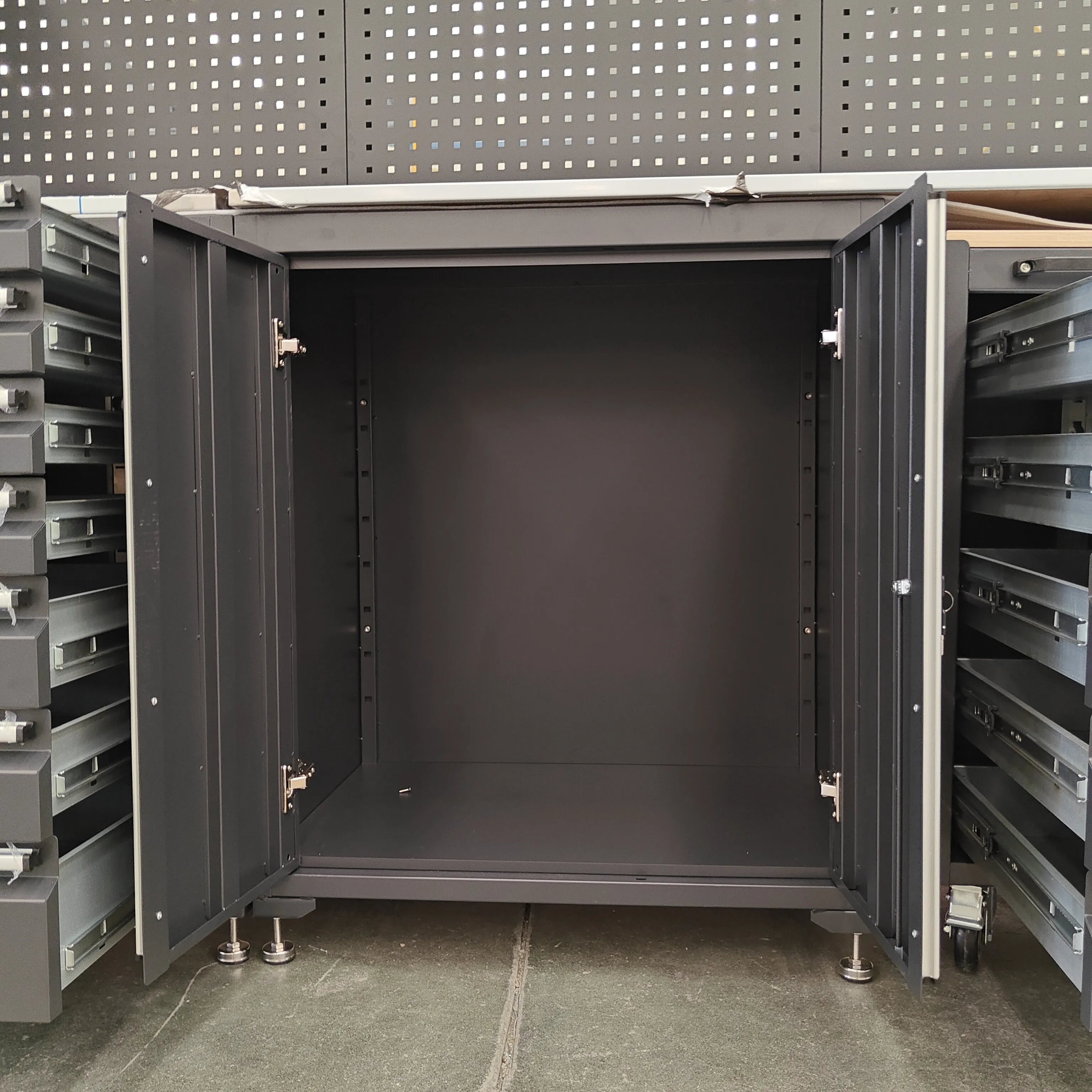 ہیوی ڈیوٹی ٹول کابینہ میں متعدد دراز کی خصوصیات ہیں ، ہر دراز کے لئے کھلی شیلف ڈیزائن کے ساتھ ، مختلف سائز کے ٹولز کے لئے موزوں ہے۔