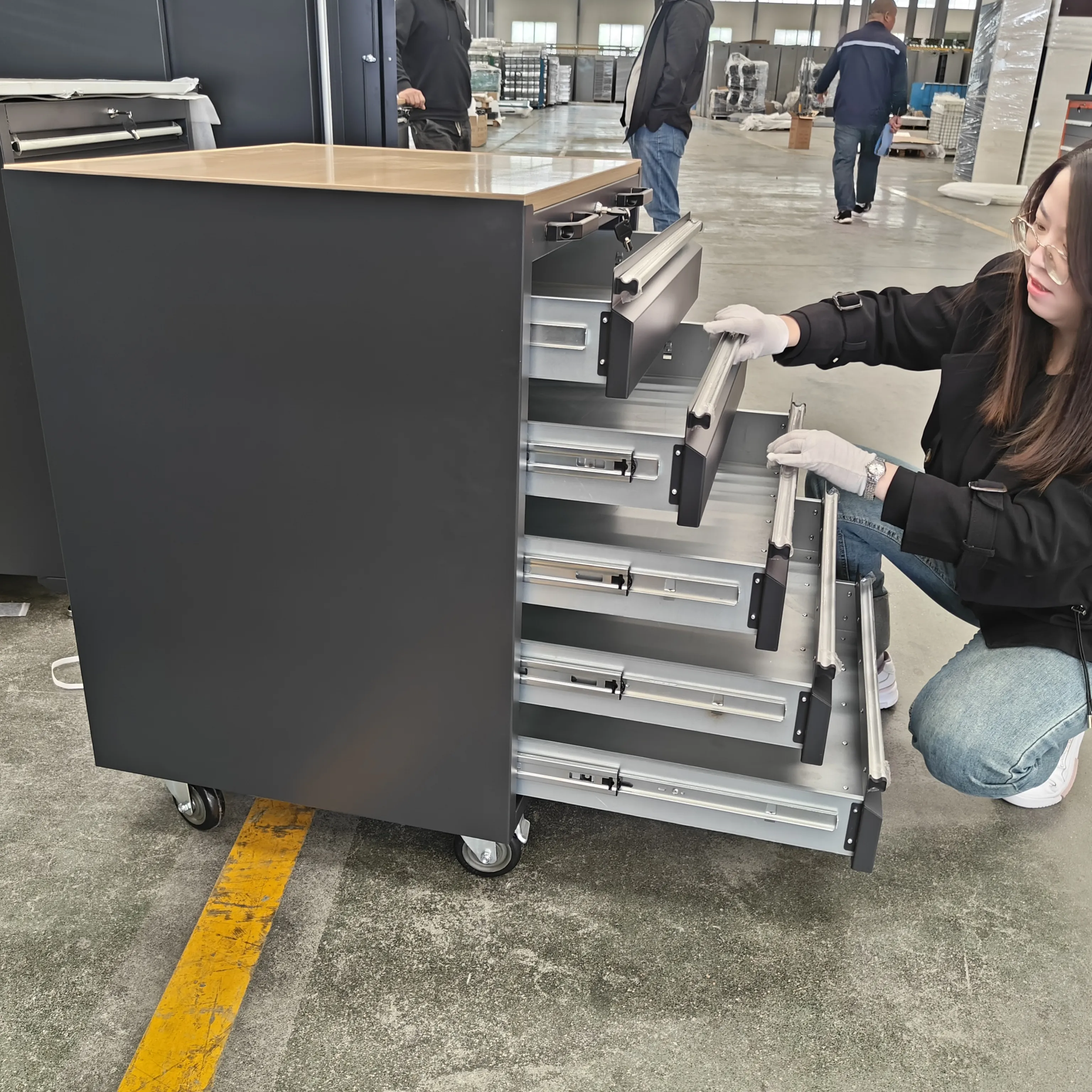 ہیوی ڈیوٹی ٹول کابینہ کے دراز خاموش سلائیڈنگ ریلوں سے لیس ہیں ، جب درازوں کو کھولنے یا بند کرتے وقت کوئی شور نہیں ہوتا ہے۔