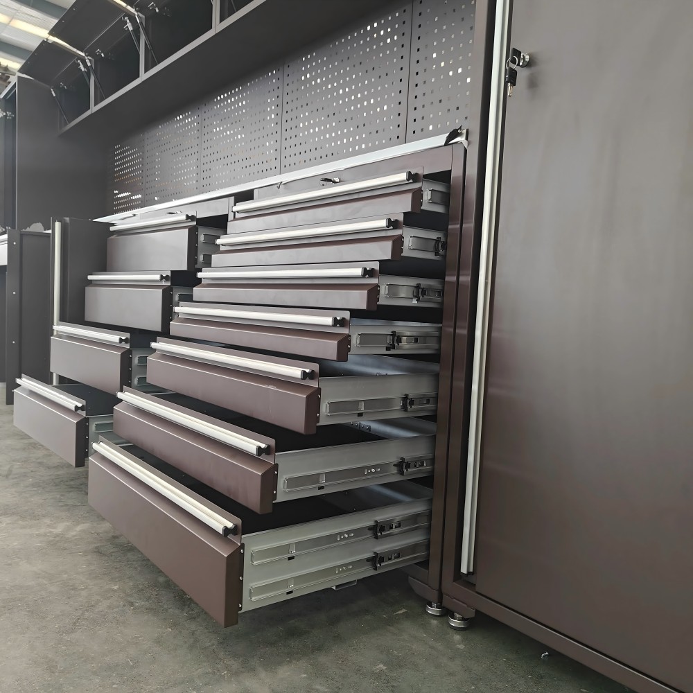 ملٹی فنکشنل انضمام:ملٹی فنکشنل مجموعہ ٹول کابینہاس کے اندر متعدد کمپارٹمنٹس ہیں جن کو صارف کی ضروریات کے مطابق مختلف سائز اور شکلوں کے اوزار ، سازوسامان اور فائلوں کو ایڈجسٹ کرنے کے لئے لچکدار طریقے سے ایڈجسٹ کیا جاسکتا ہے۔ ملٹی فنکشنل مجموعہ ٹول کابینہ پیشہ ور ٹول ہکس ، دراز اور پارٹیشنوں سے لیس ہے تاکہ یہ یقینی بنایا جاسکے کہ ٹولز صاف ستھرا بندوبست اور رسائی میں آسان ہیں۔