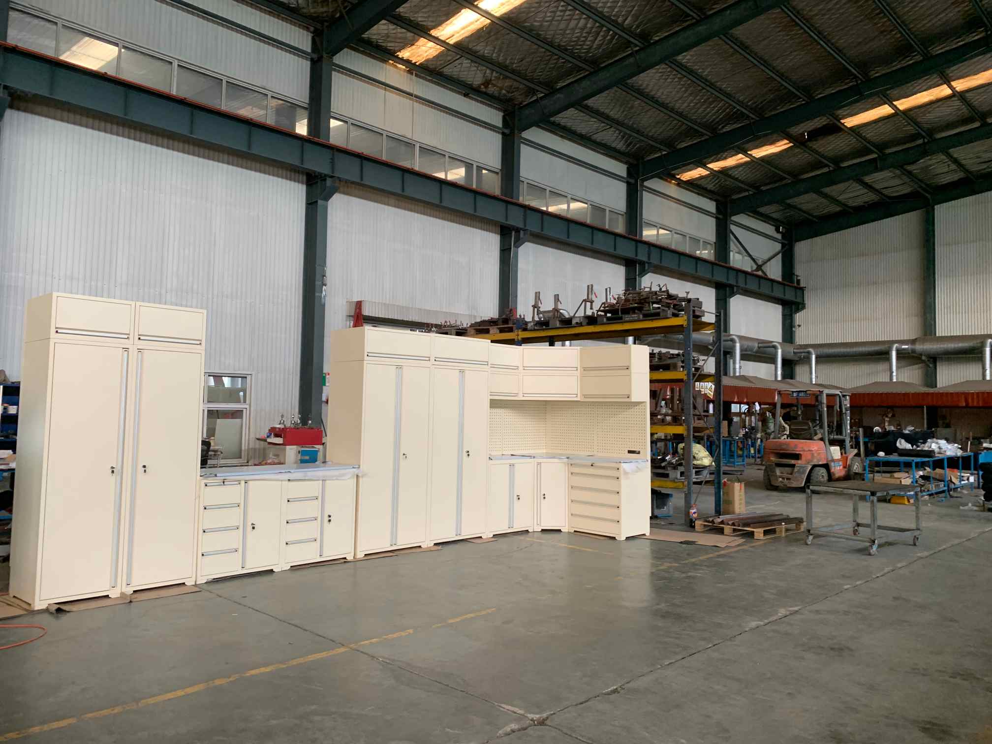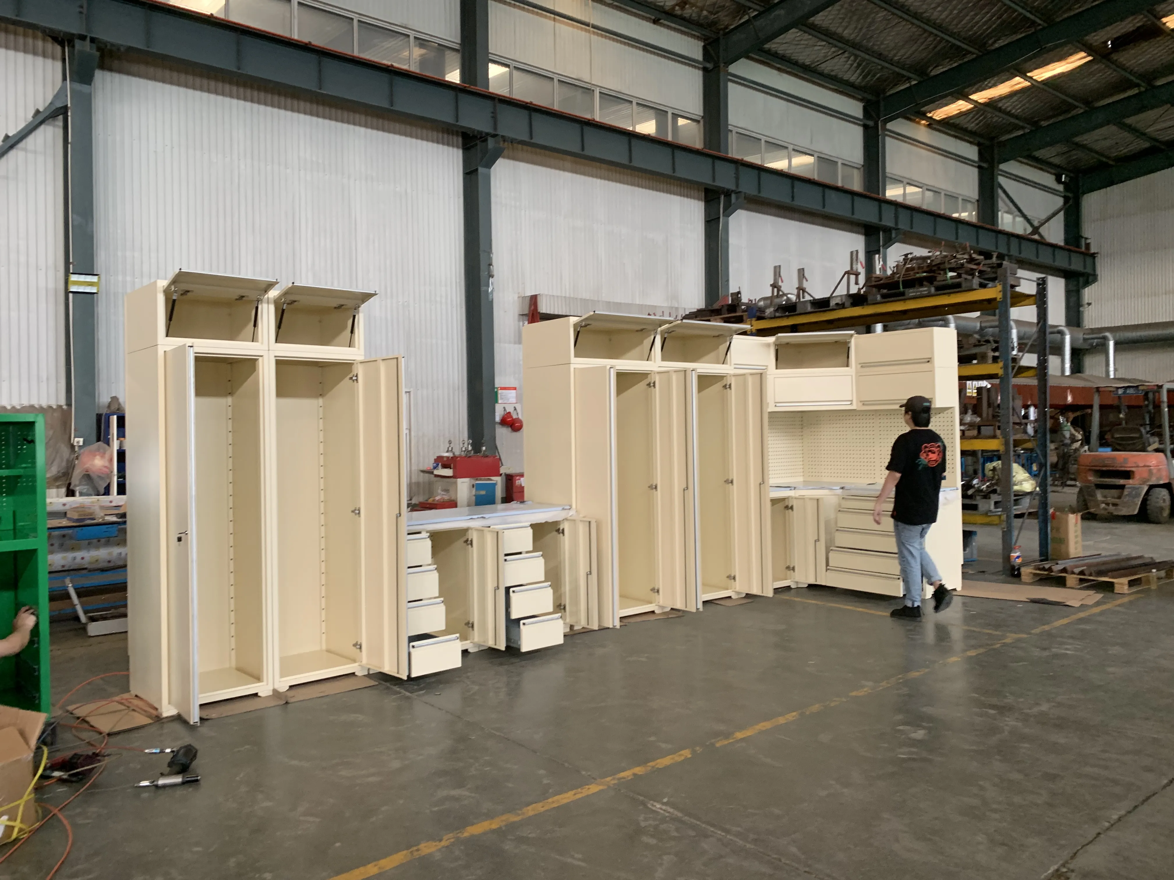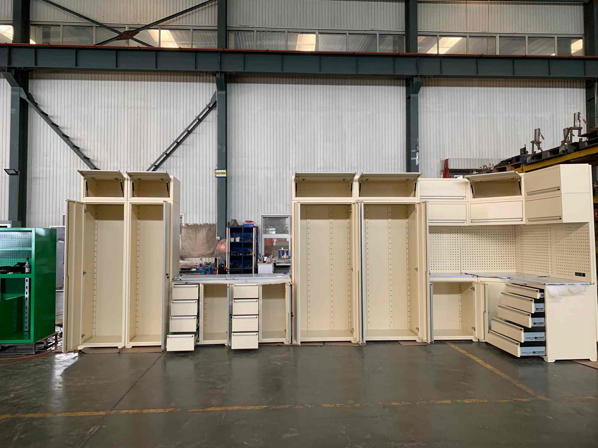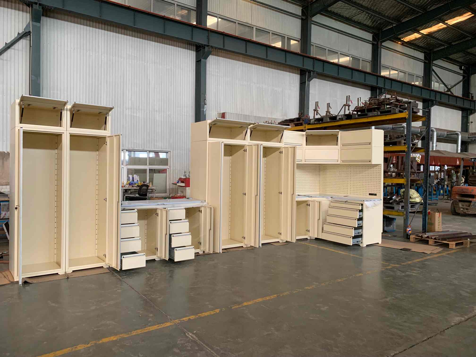 ٹول کابینہ ، ٹول ورک بینچ ، گیراج کابینہ ، ٹول گڑھے کی ٹوکری ، ٹول باکس ، سینے تک رسائی ، کنٹینر ہاؤس وغیرہ۔